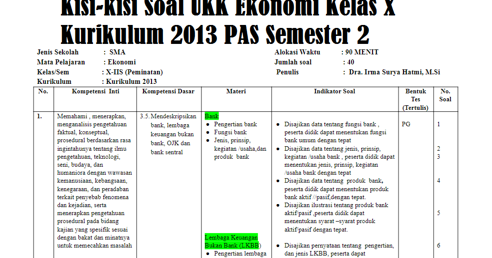 Kisi-kisi Soal UKK Ekonomi Kelas X Kurikulum 2013 PAS ... from 4.bp.blogspot.com Tim mgmp ekonomi semester : Kisi kisi uas ekonomi kelas x xi xii semester 1 kurikulum 2013 dan ktsp 20172018 ini merupakan file yang akan saya bagikan dalam postingan. Kompetesi dasar materi urut kelas soal kognitif soal soal disajikan indeks harga konsumen di suatu daerah pada 3 tahun pilihan 13. Latihan soal pat ekonomi sma kelas x (10) kurikulum 2013 dan kunci jawabannya. Membuat petunjuk umum dan khusus untuk mengerjakan soal. Tujuan penyusunan kisi kisi adalah untuk menentukan ruang lingkup dan sebagai petunjuk dalam menulis soal. Buruk adalah — dari baik;. Diharapkan contoh format kisi kisi soal kurikulum 2013.
